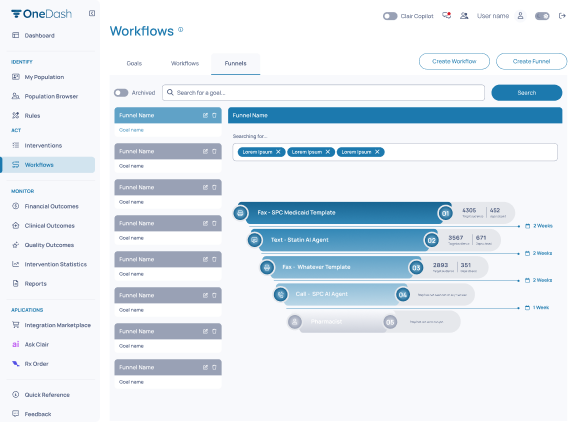 OneDash simplifies the management of complex healthcare workflows by structuring the process into a clear, step-by-step funnel.